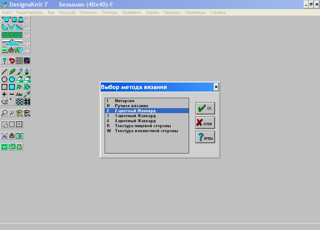 Отвечаем нет на вопрос о сохранении настроек для последующих файлов и выбираем способ переплетения 2-х цветный жаккард.