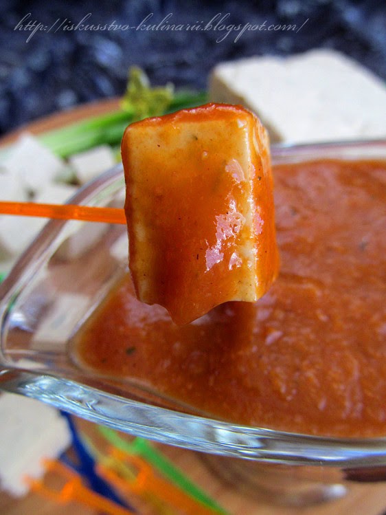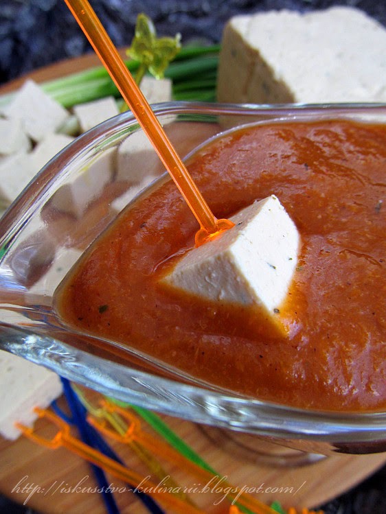 Абрикосы перебить блендером в пюре, добавить томатный соус (или кетчуп) и специи, перемешать.