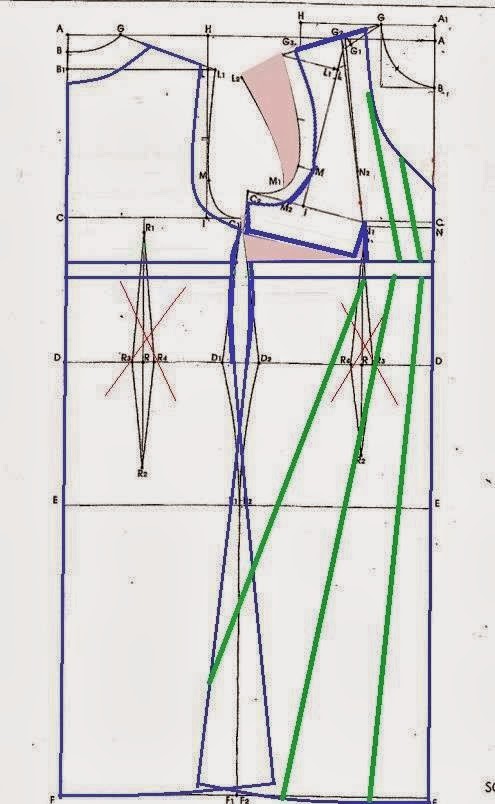 В корсаж я обратила две линии, которые начинаются