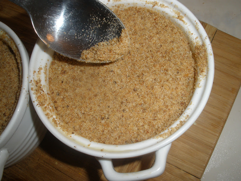 4. Подготовить одну большую стеклянную форму для выпечки или несколько порционных, я взяла 2 вот такие симпотичные кастрюльки, по типу больших кокотниц! Объем подошел идеально! Смазать их маслом и обильно присыпать панировочными сухарями.