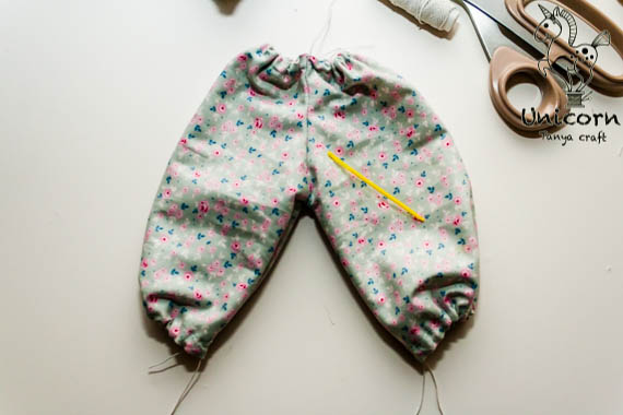 Одеваем. Выкройка штанов лежит там же, но надо соблюдать размерность. По выкройке в книге у меня получились очень большие штаны. Обрезала лишнее :)
