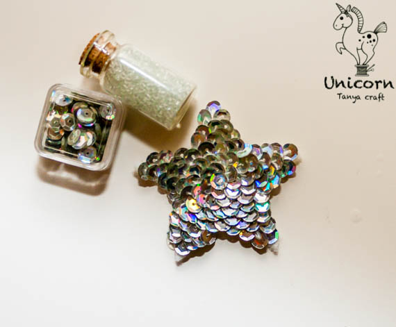 Вышиваем звезду паетками. По шаблону вырезаем звезду из фетра.
