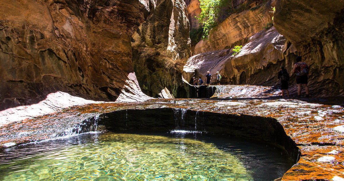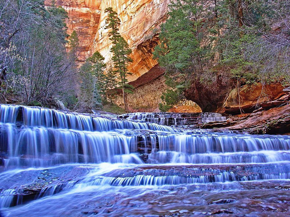 Национальный парк Зайон особенно красив после проливного дождя, когда водопады со скал несут свою влагу в Изумрудные пруды или направляют ее вдоль мощеной Прибрежной дорожки длиной в одну милю. Это конечный пункт тропы по теснине каньона Зайон - трудного туристского маршрута длиной в 26 км. Речные маршруты каньона Зайон, пролегающие вдоль капающей ключевой воды и зеленеющих висячих садов в виде мхов, папоротников и губастиков, даруют живительную прохладу, спасая от жары. Поднимитесь по 4-км крутой тропе к Приюту ангелов в виде выступа над каньоном, столь узкого, что перехватывает дыхание.