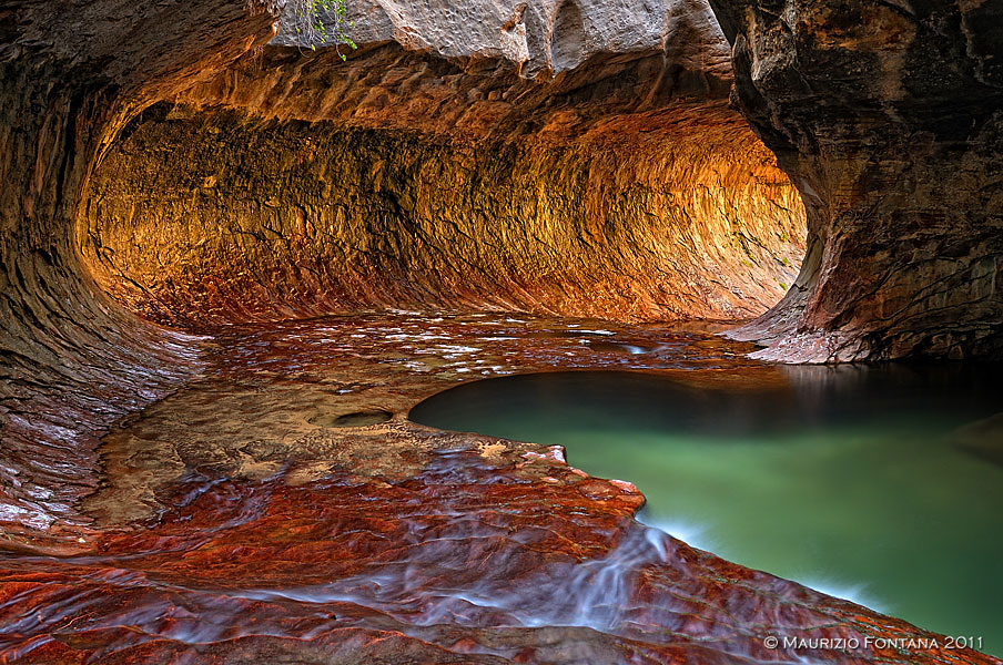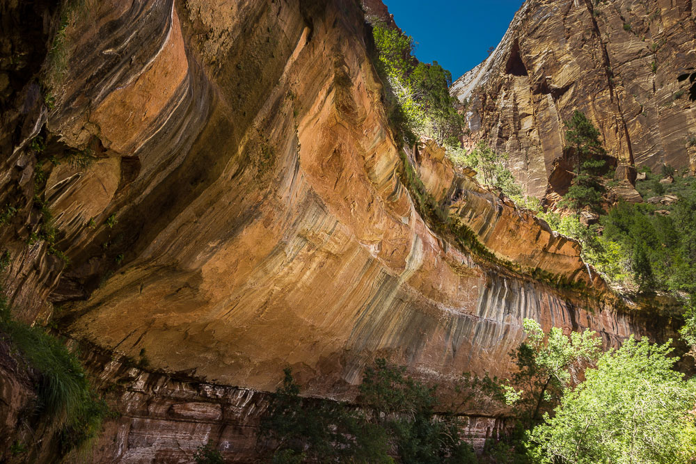 Другая широко известная достопримечательность Национального парка Зайон - Випинг-Рок - Плачущая скала: вода из родника, расположенного высоко на склоне, стекает по скале и капает, словно слезы, с ее выступов.