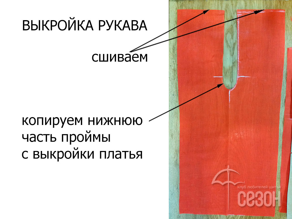 После того, как платье смётано, проведена примерка и внесены корректировки, можно приступать к рукаву.