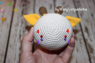 Основание ушка сложить и сшить, как показано на фото. Пришить к голове на уровне 31 и 32 ряда.