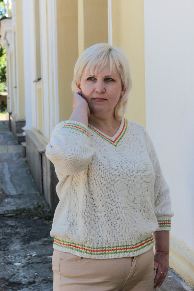 Выше - один из самых распространенных и любимых мною узоров. Эти ромбы хороши и для мужских и для женских моделей. Подобным узором я вязала свой джемпер: