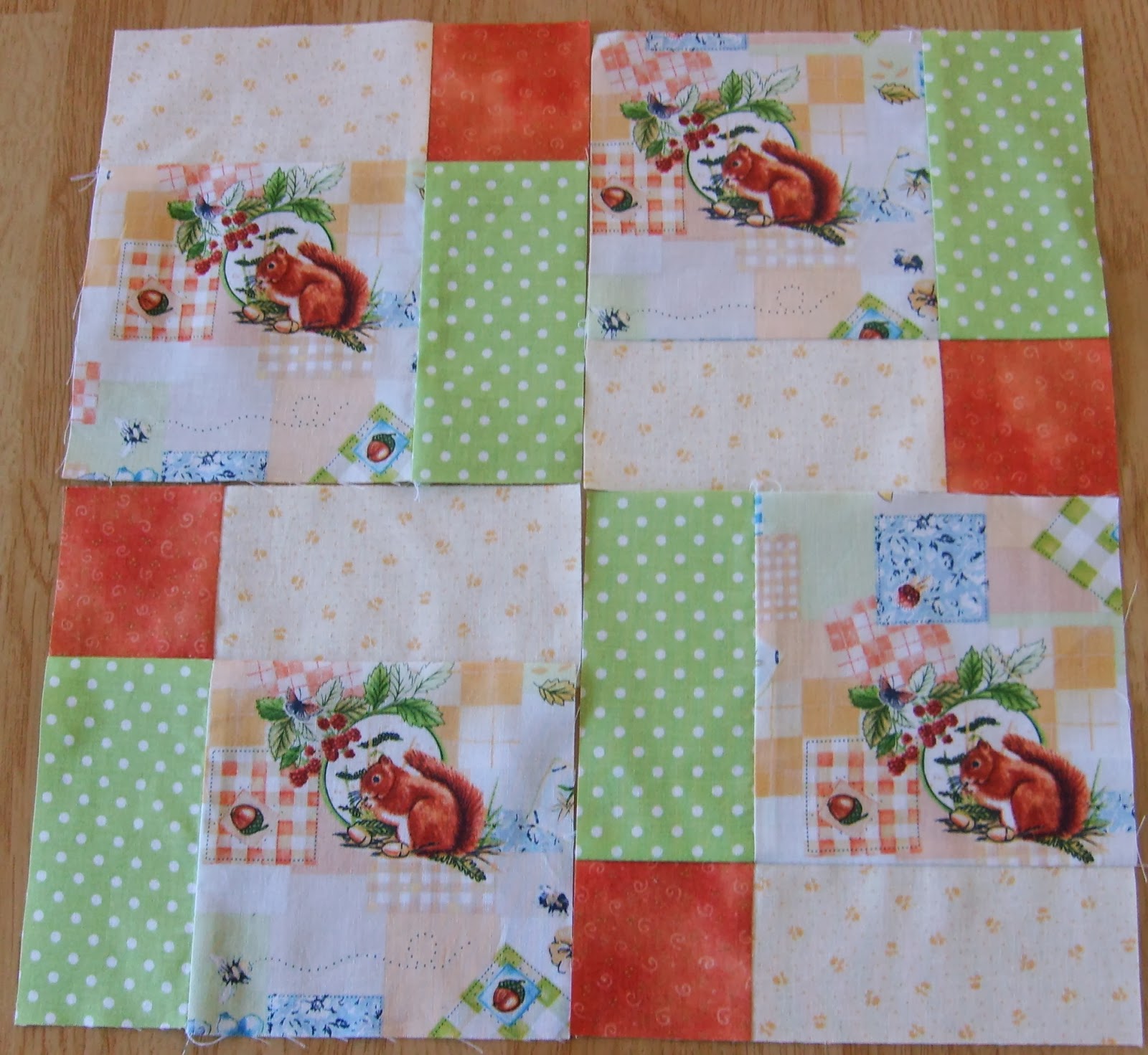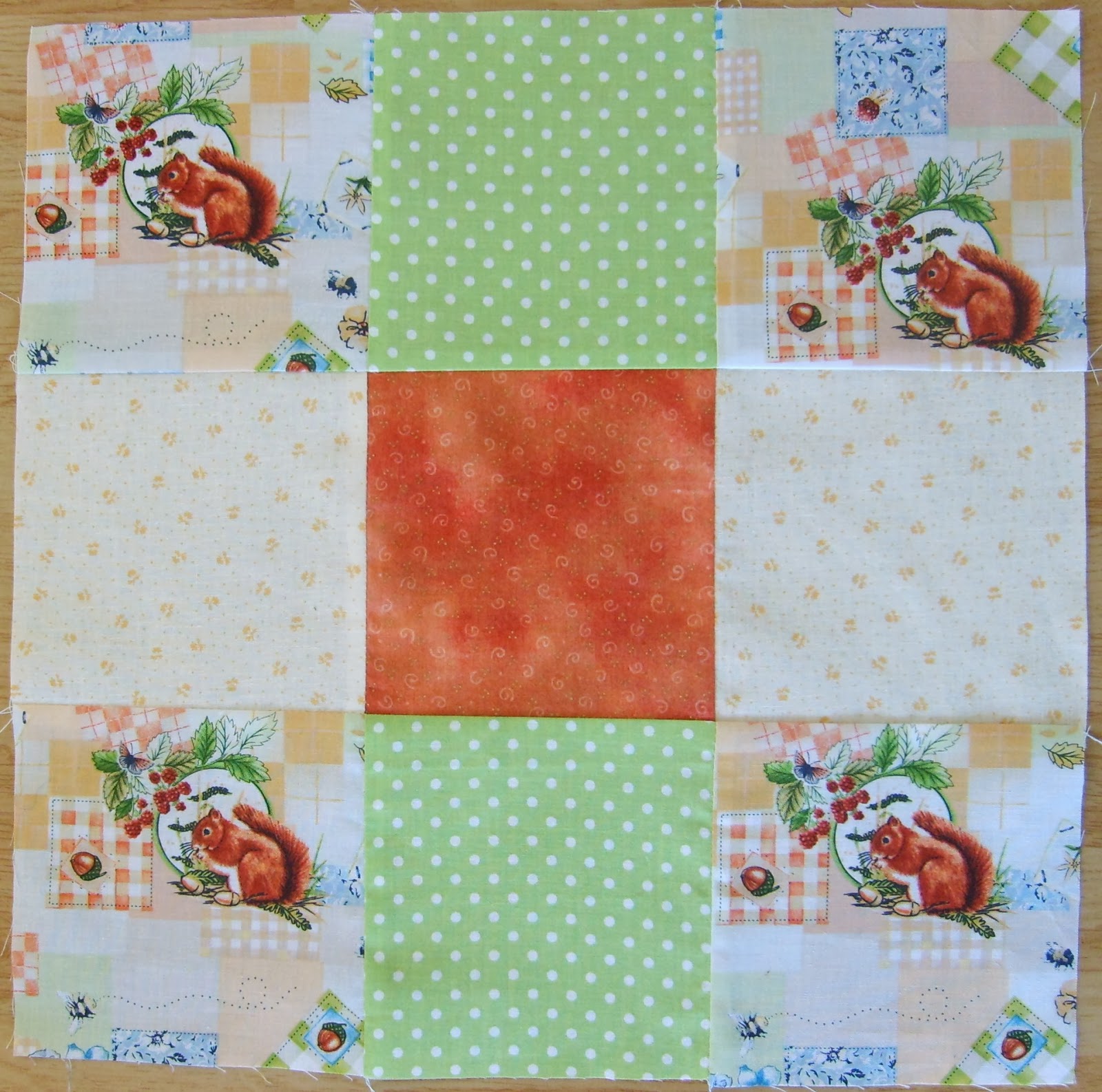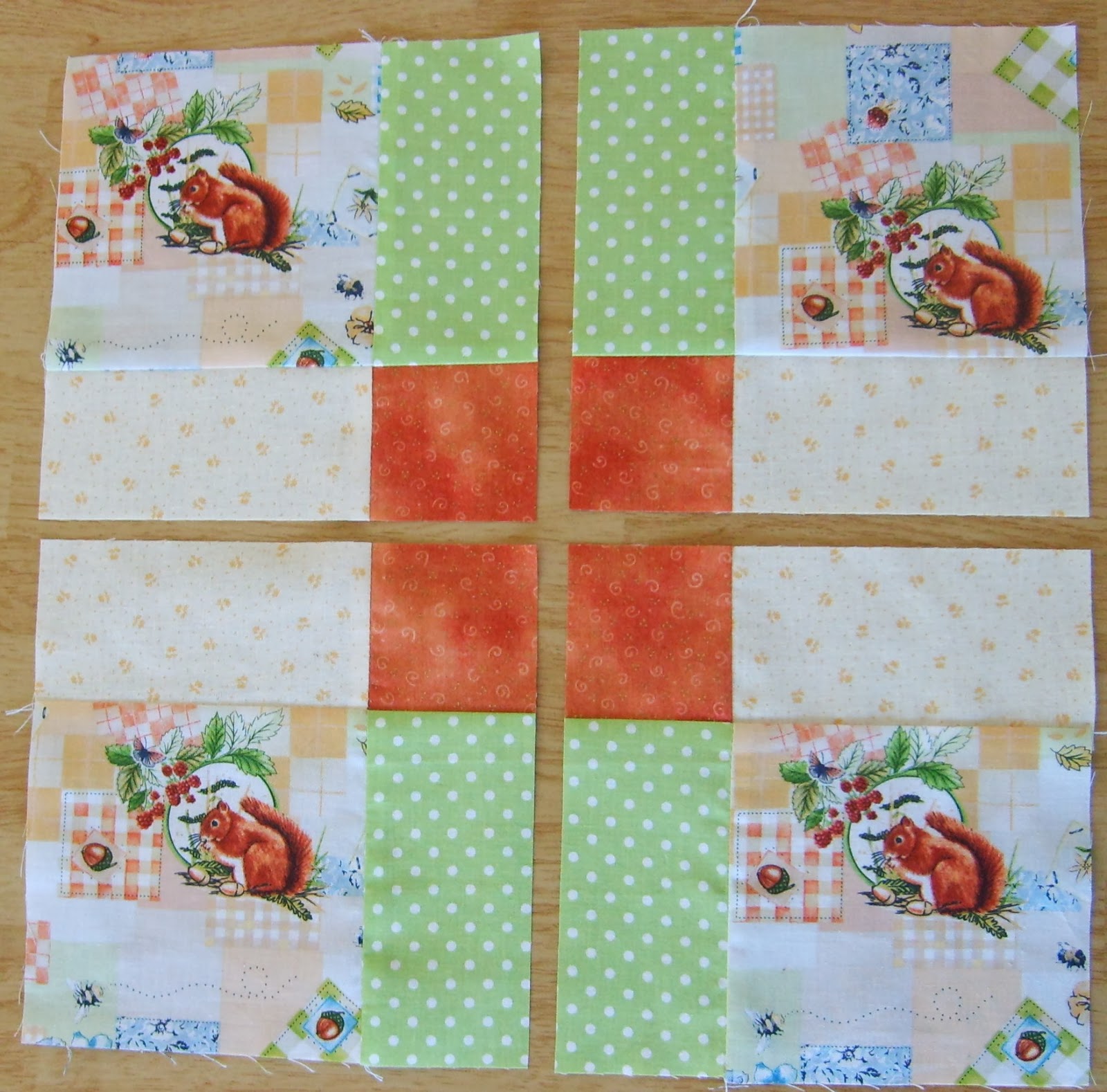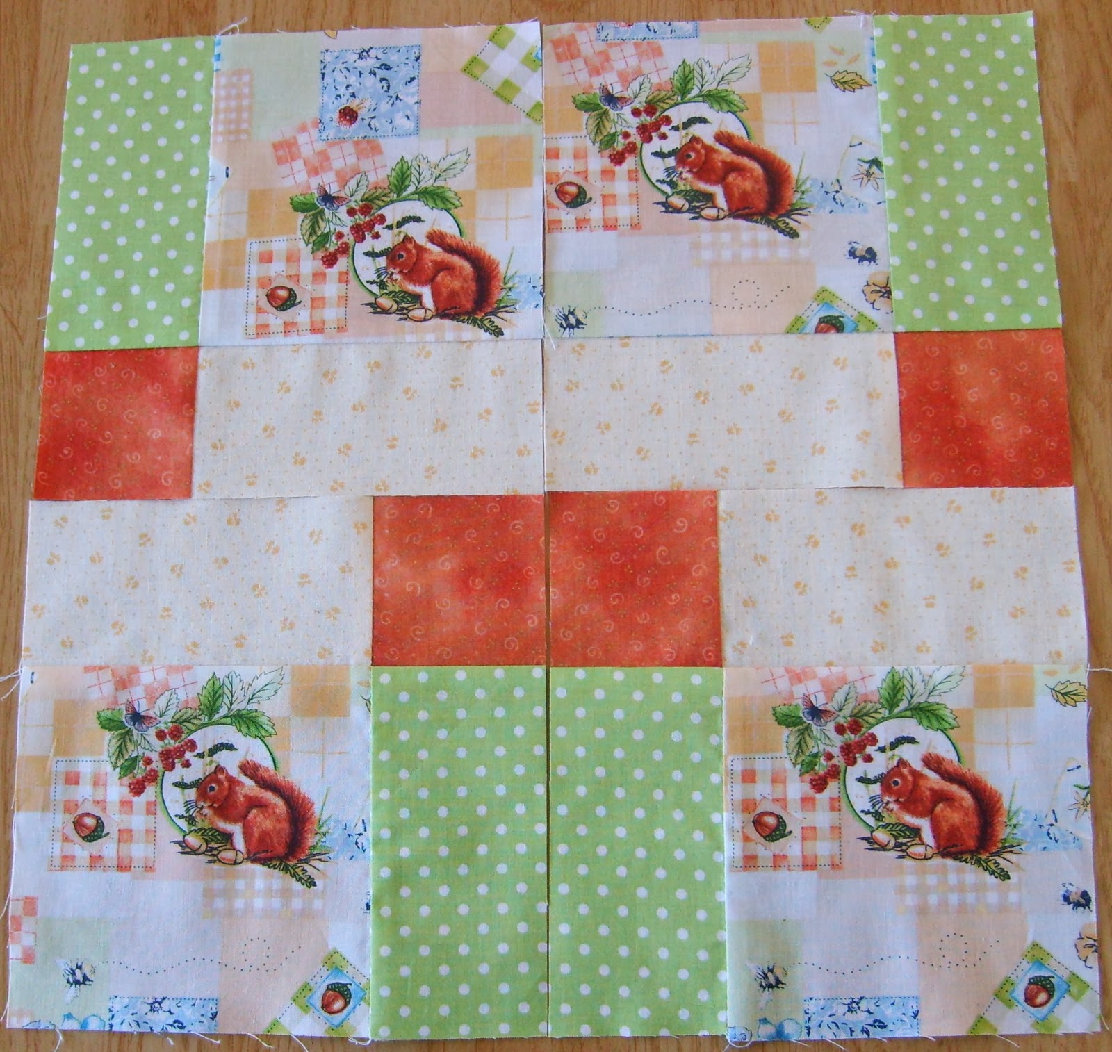 1. Для этого блока нужно брать ткани с рисунком, который можно поворачивать на все 360.
