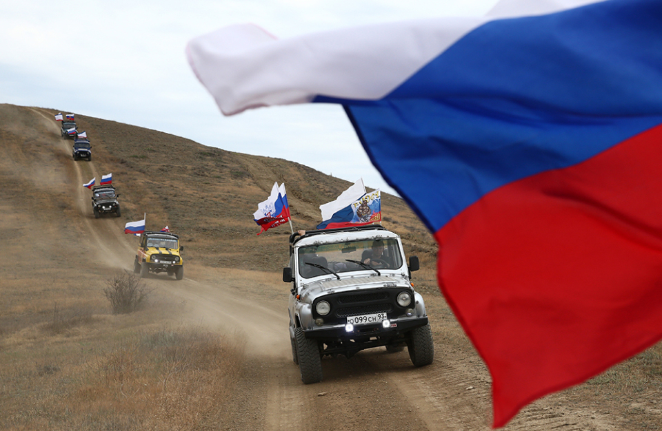 Автомобили клуба «4 х 4 Судак» во время автопробега из Судака на мыс Толстый в рамках празднования Дня России.