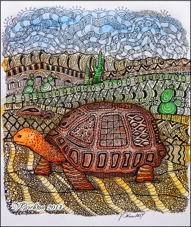 "Черепаха" - (узоры в технике зентангл) - гелевая ручка, акварель, пастельный карандаш.