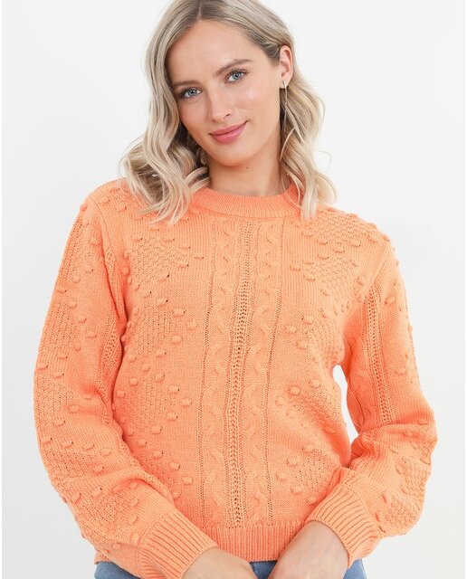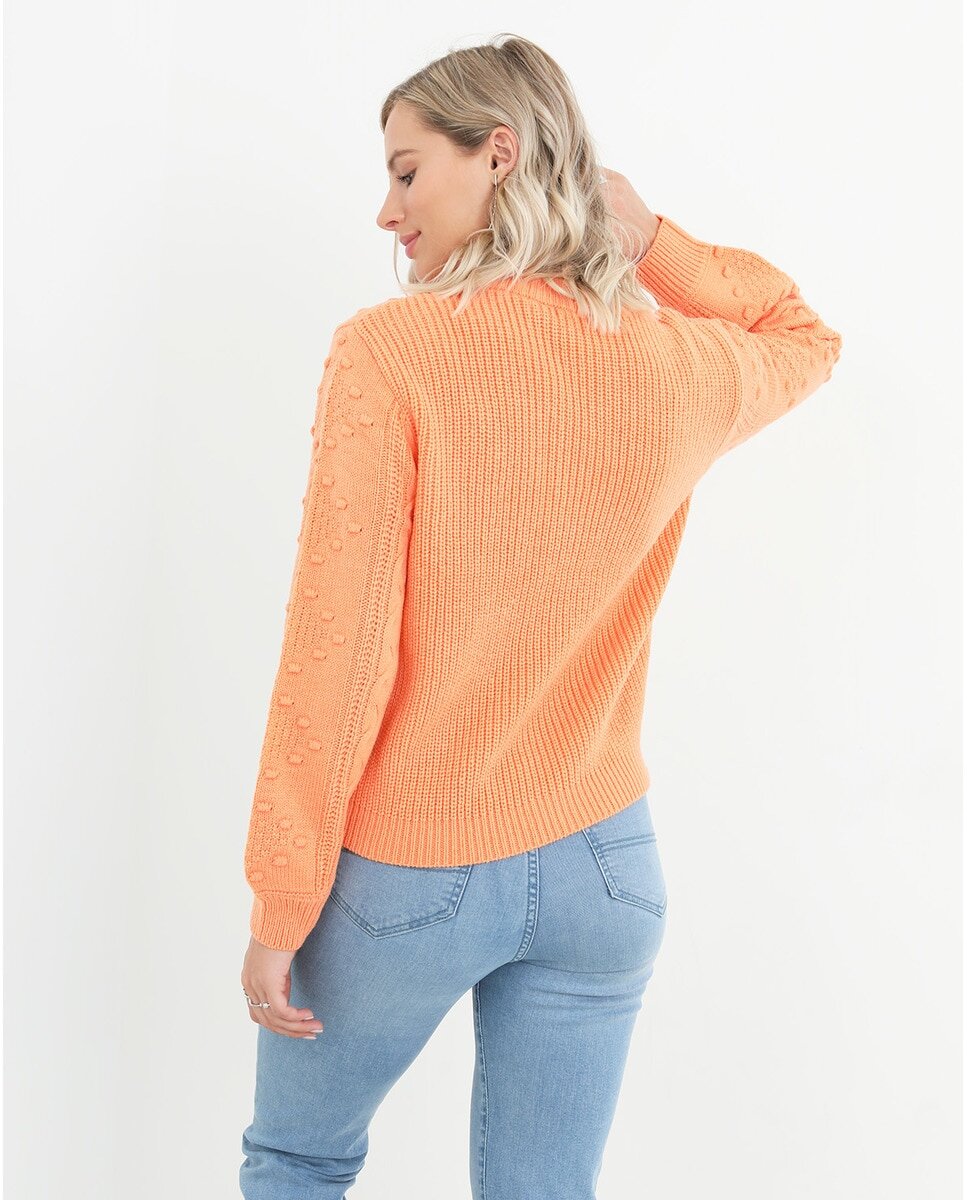 Свитер мне понравился из-за красивого персикового цвета и необычных крупных ромбов, украшенных "шишечками".