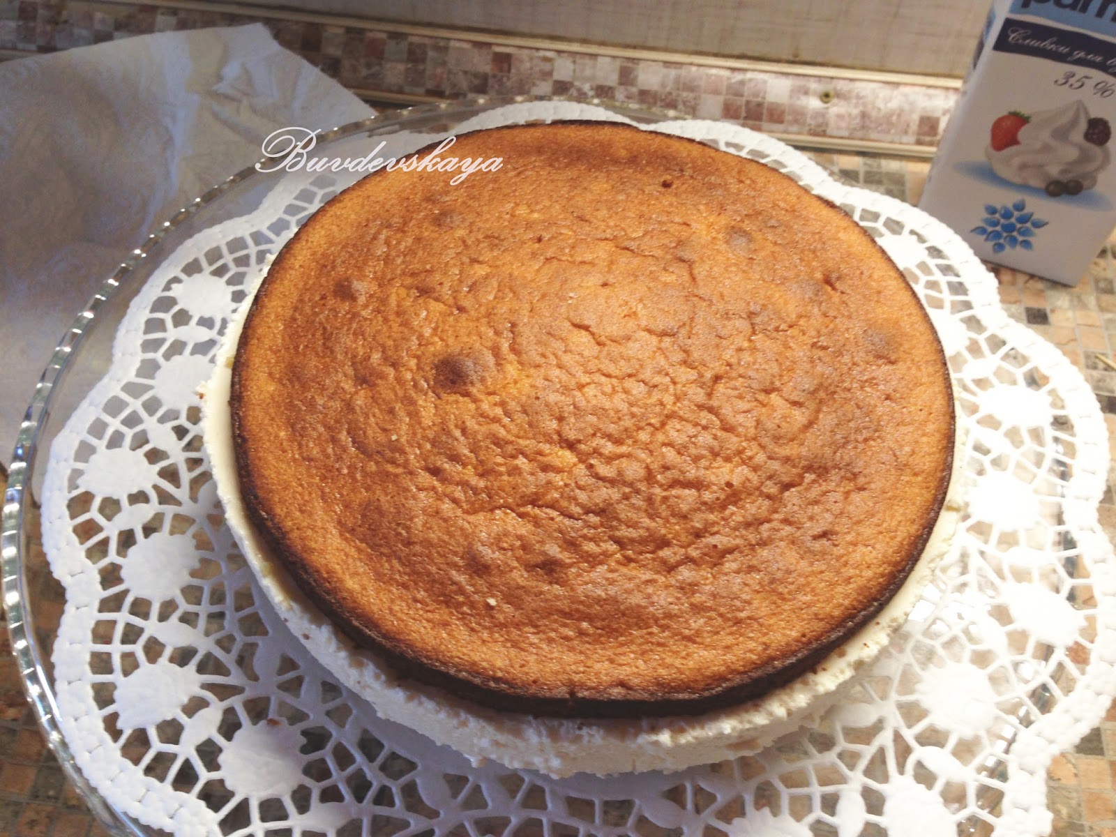13. Накрыть вторым коржом. Оставить на 1 час. Снять борта.