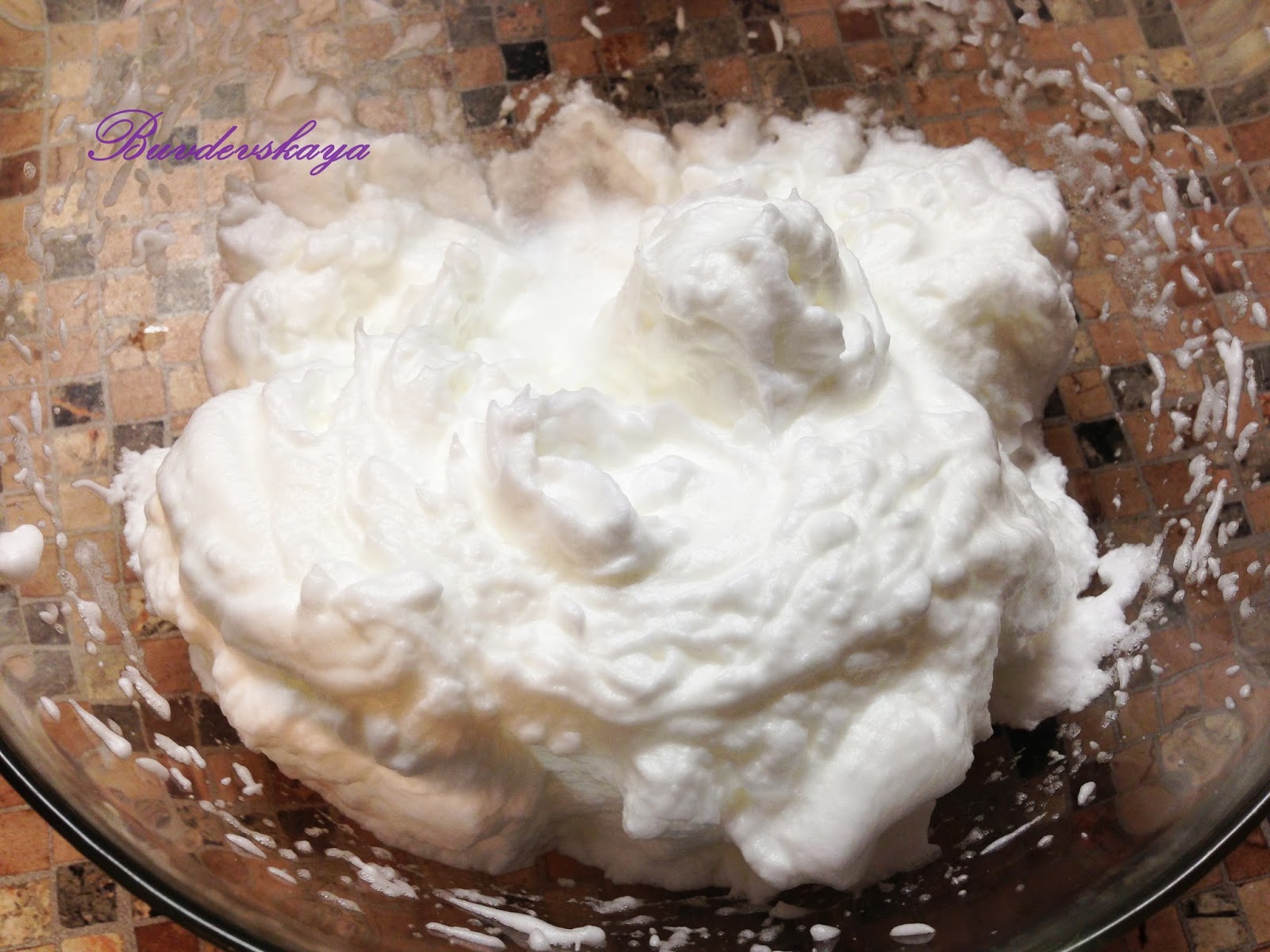 2. Белки отделить от желтков, взбить в крепкую пену.