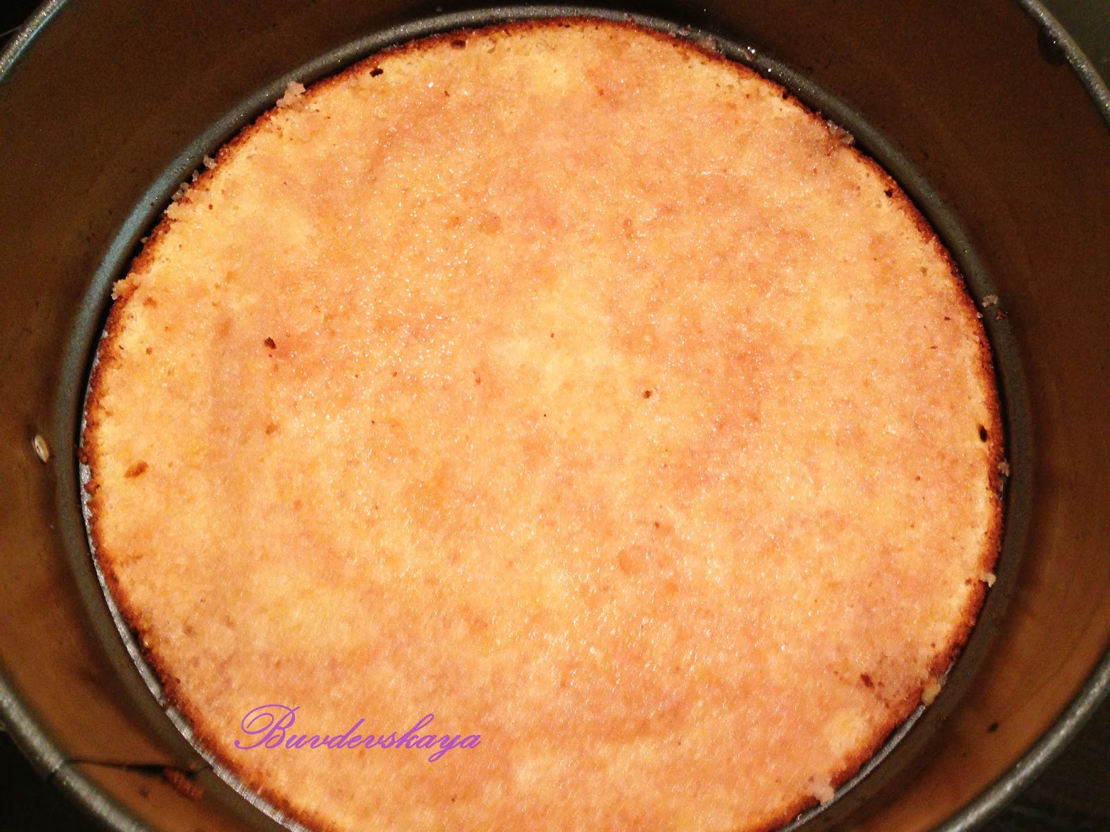4. Взбитые белки аккуратно добавить в тесто. Выложить в форму для выпекания. Выпекать в течение 30-40 мин (зависит от размера формы и от духовки). Остудить, достать из формы. Разрезать на два коржа.