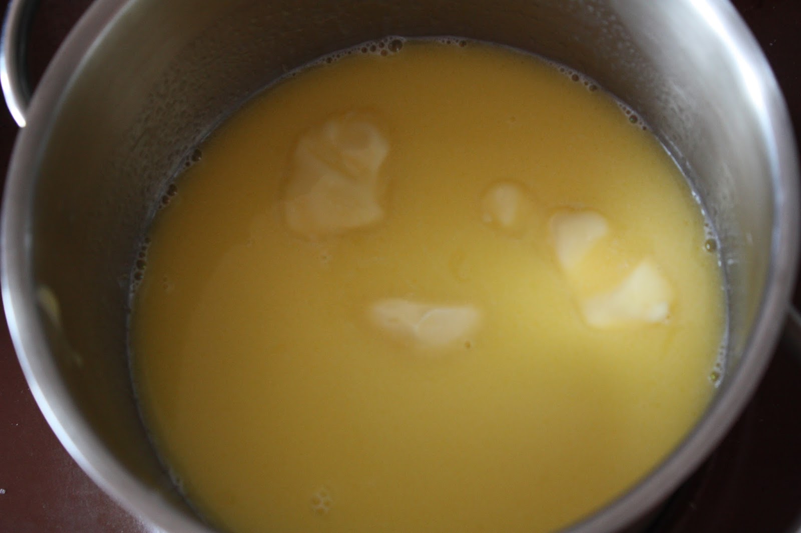 Теперь главное. Наше заварное колесо. Тут главное правильно сделать тесто. Доведем до кипения молоко, воду, масло, соль и сахар.