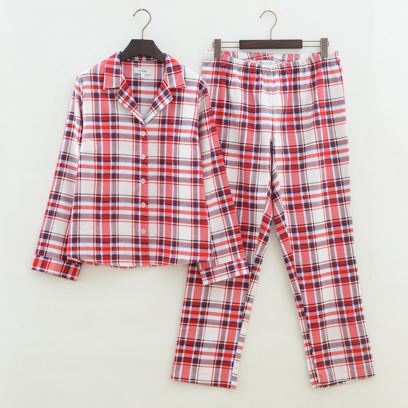 Классическая пижама с рубашкой на пуговицах и свободными штанами порадует модным принтом клетка.