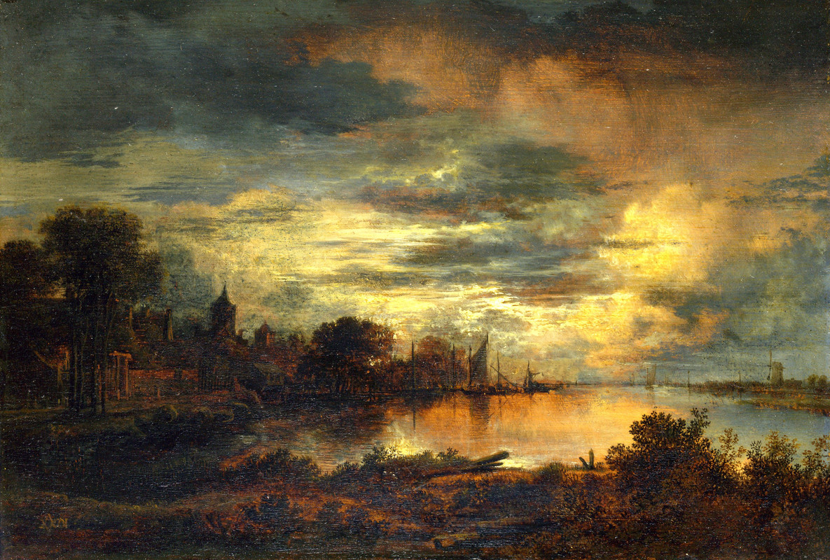 Арт ван дер Нер – Деревня у реки в лунном свете