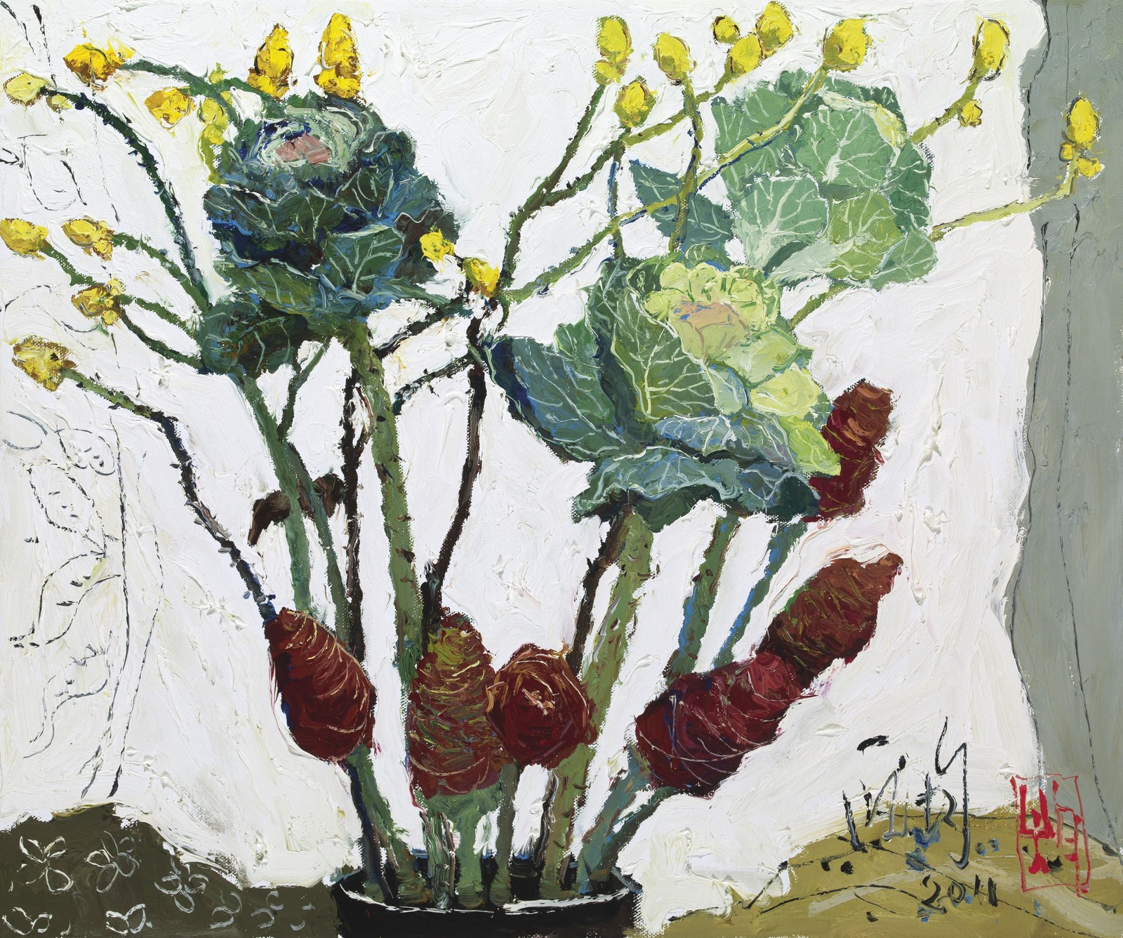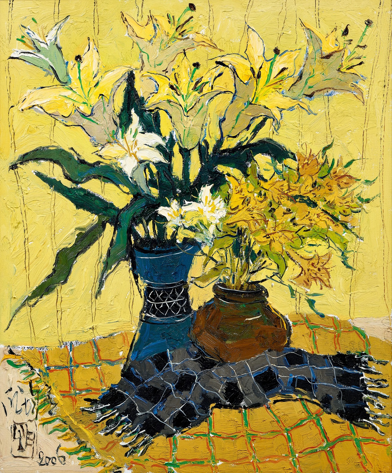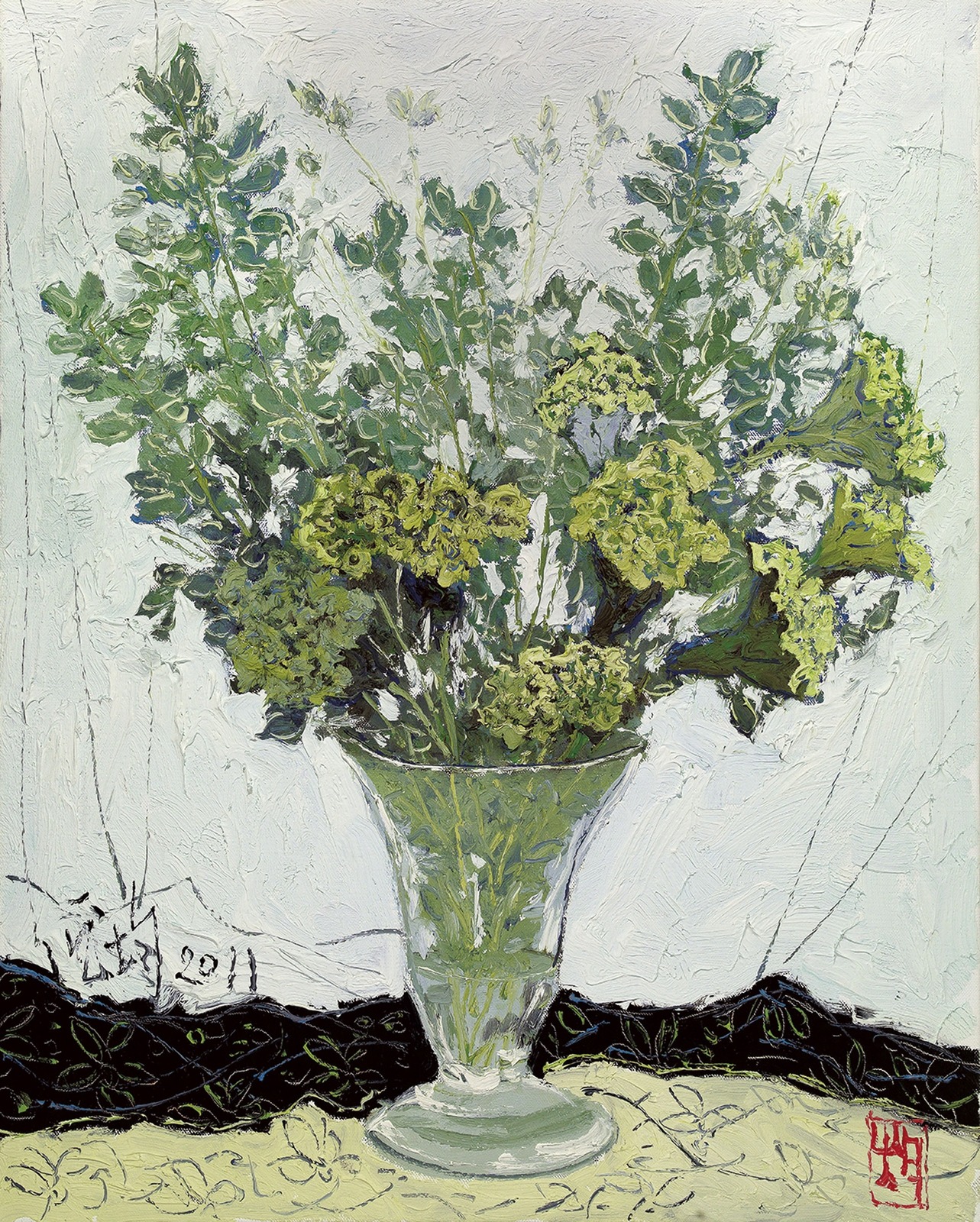 Pang Jiun родился в Шанхае в 1936 году в артистической семье. Стиль художника сочетает западный импрессионизм с китайской спецификой. Особого внимания заслуживают его пейзажи реки Лицзян в Гуйлине, в которых он изящно изображает горы, реки, деревья и цветы этой местности. С помощью серых тонов, он мастерски передает облака, туманы дождей и эффектные пейзажи. Хотя он и использует западную технику, но искусно сочетает ее с восточной чувственностью. Безмятежное и спокойное настроение пронизывает эти произведения, что делает их весьма привлекательными и желанными для зрителей.