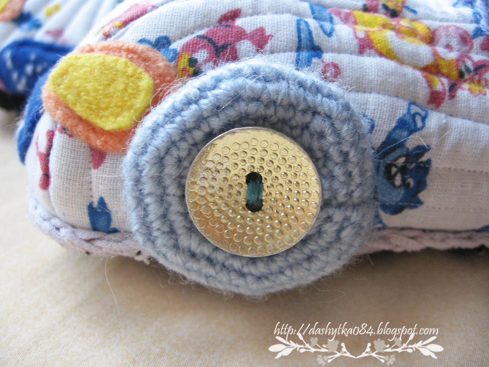 Связала колёса. ЛегкотнЯ! Вяжутся по принципу амигуруми. Первый ряд - 6 столбиков, второй - 12, третий - 18... В каждом ряду по 6 столбиков прибавляем. После шестого ряда (36 столбиков) провязываем ряд без убавлений и прибавок. Сильно широкие колёса делать не стала, чтобы не мешали ходить. Мой ребёнок и так на ровном месте спотыкается (весь в мать!). Так вот, провязали, значит, один ряд без изменений, а дальше пошли убавлять. В том же порядке. Первый ряд - 30 столбиков, второй - 24, третий - 18... Перед предпоследним рядом набиваем очень слабенько синтепоном (ну или чем вы там обычно набиваете). Восьми одинаковых пуговиц у меня не оказалось, поэтому пришлось решить, что так даже интереснее ))) Пришиваем колёсики. Правда, потом мне задние колёса немного мешали, об этом ниже