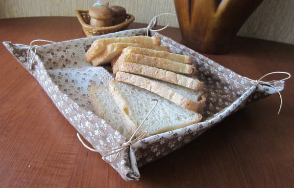 Салфетка завязывается на вощеные шнуры и получается хлебница или например, тарелочка для кулича и яичек пасхальных.