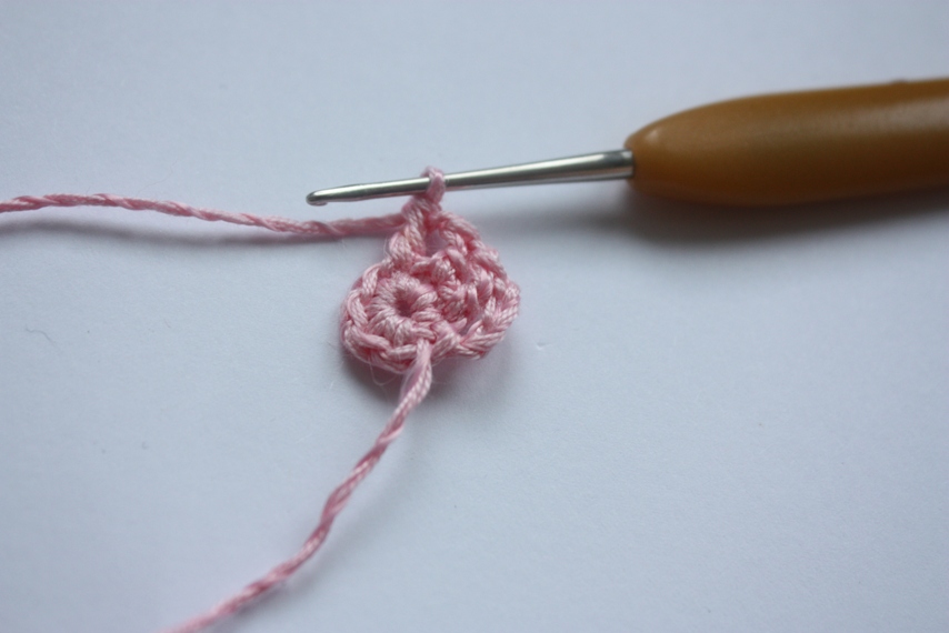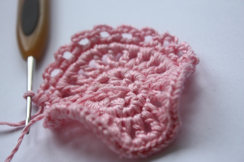 6) 1 х сл. й, [1 х СБН, 3 х ч, пропустите 2 стежка], повторите around. Join с стежок промаха (всего 24 маленьких цепей)