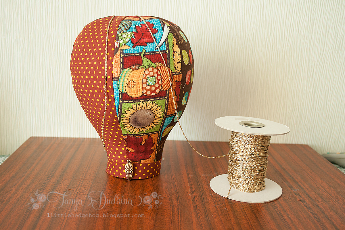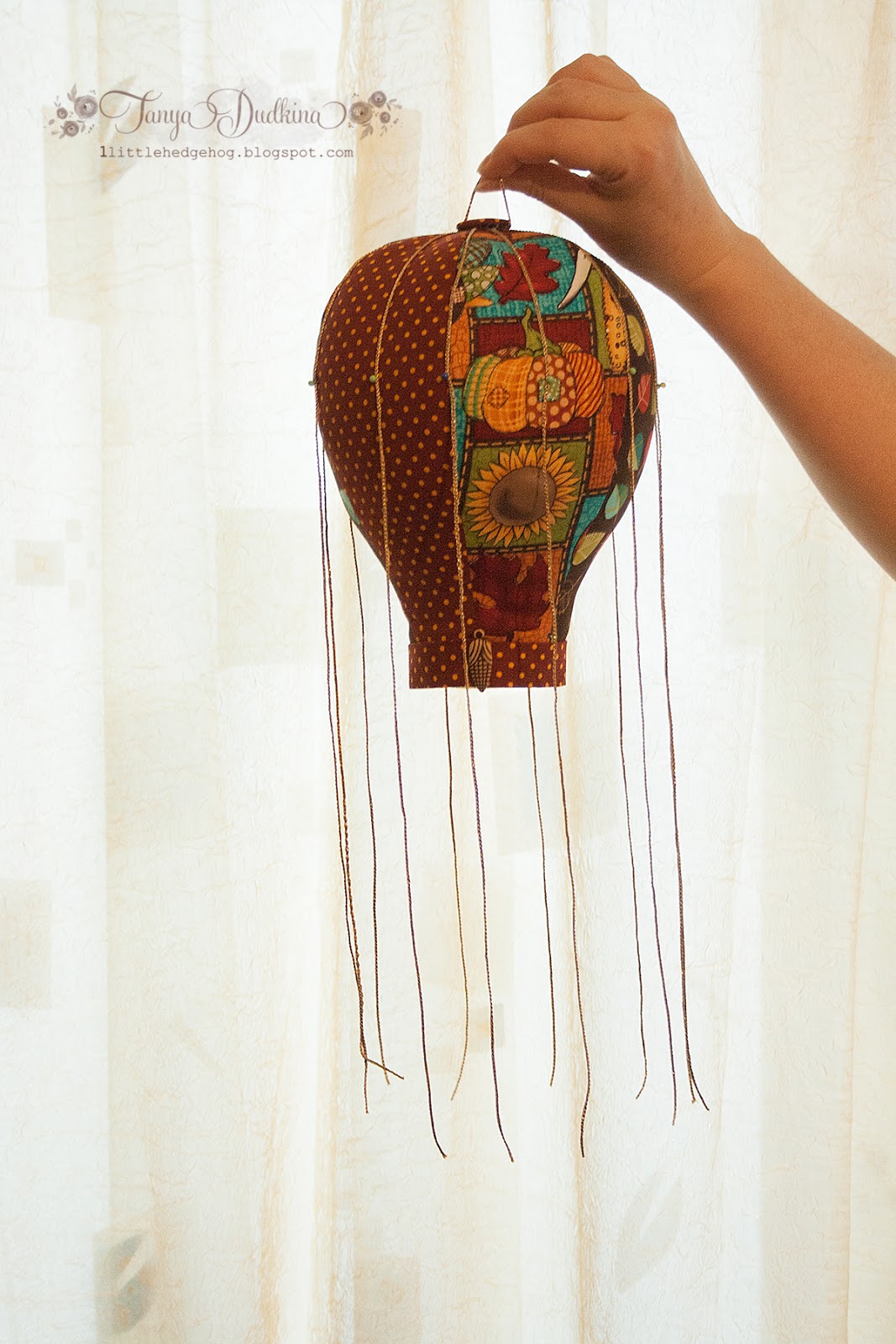 Вот так выглядит наш шар сейчас. Стык полосочки закрыла подвесочкой на осеннюю тему:)