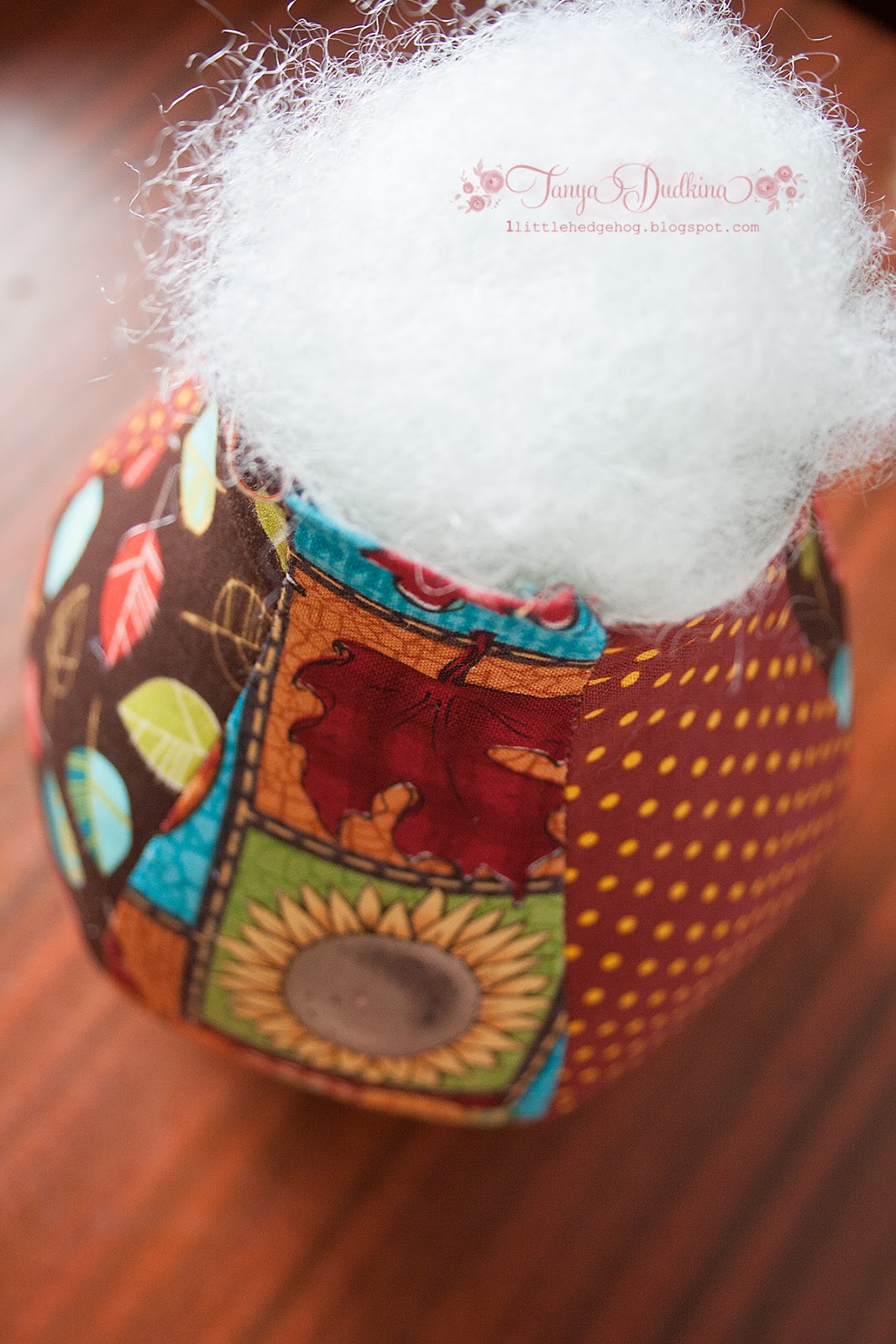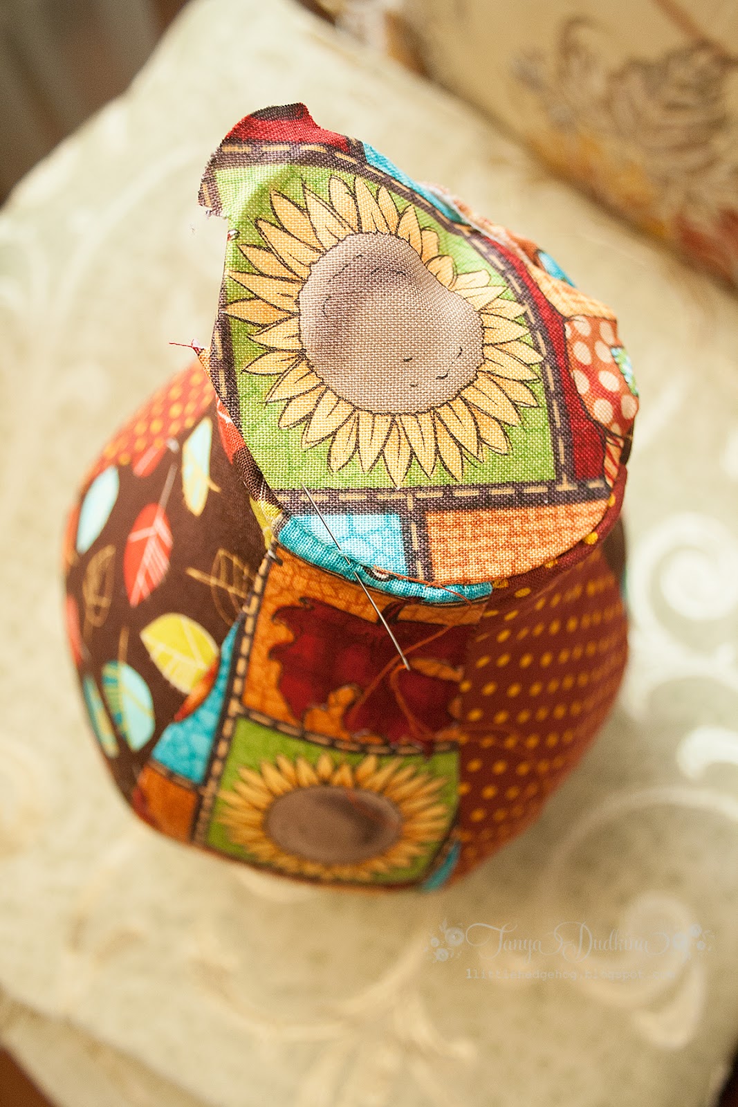 И вкладываем внутрь донышко и за припуск пришиваем к шару потайным швом:)