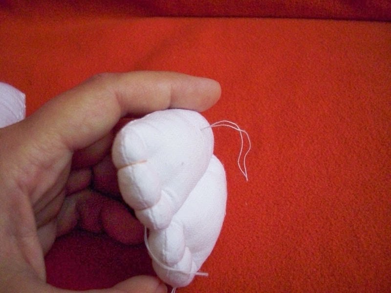 Сначала зашьем отверстие для набивки. Необязательно это делать очень красиво, главное, чтоб набивка не вылезала из отверстия.