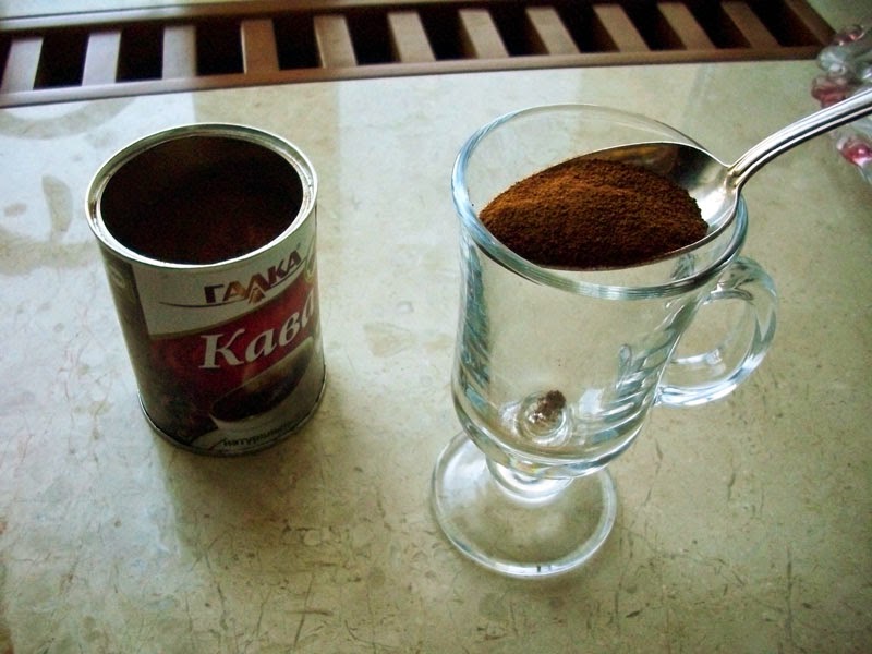 Вскипятим воду в чайнике. В чашку положим 1 столовую ложку кофе, 1/3 чайной ложки корицы, и зальем примерно 50 мл кипятка.