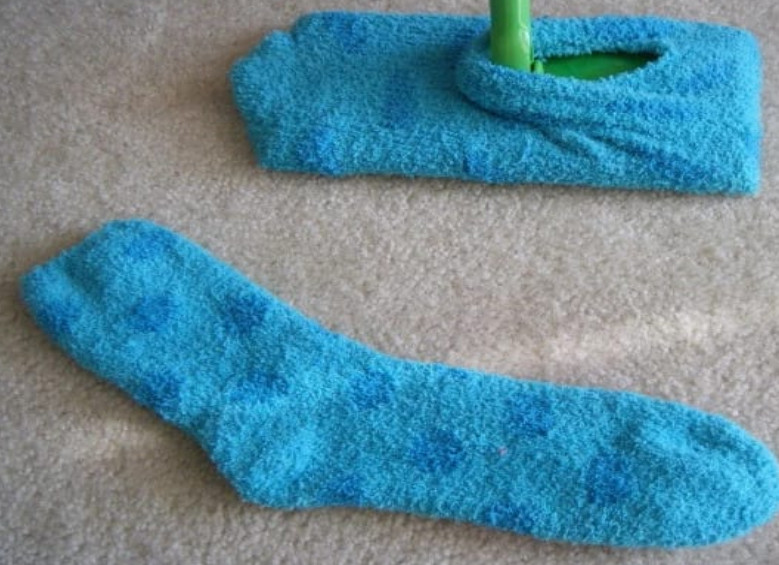 Наматывать тряпку на швабру не всегда удобно, да и специальных насадок может не оказаться под рукой. Ситуацию спасет пара махровых носков. Просто? Возможно. Гениально? Однозначно!