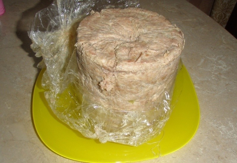 Повезло, что нашла этот рецепт. Ингредиенты Куриное филе 600 г Желатин 1 ст. л. Итальянские травы 1 ч. л. Чеснок 2 зуб. Черный перец (молотый)по вкусу Соль по вкусу Приготовление Вымойте филе, нарежьте его небольшими кусочками, добавьте сухой быстрорастворимый желатин, итальянские травы, измельченный чеснок, черный молотый перец и соль. Перемешайте и оставьте на 20 минут. Выложите мясо в рукав для запекания, завяжите его ниткой, выложите в жестяную банку, хорошо утрамбуйте. Разогрейте духовой шкаф до 190 градусов. Готовьте около 50 минут, всё зависит от вашей духовки.