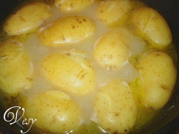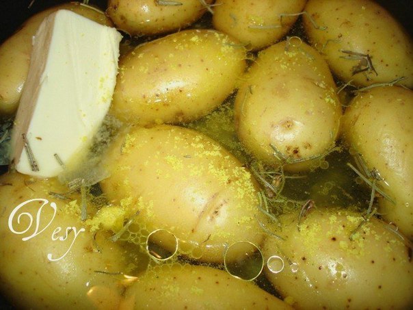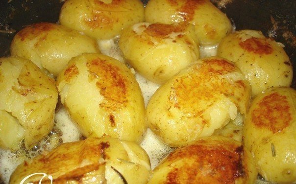 ИНГРЕДИЕНТЫ: ● картофель ● растительное масло ● розмарин ПРИГОТОВЛЕНИЕ: Пробовала готовить этот картофель и с куриным бульоном, и со сливочным маслом. Результат всегда радовал. Изложу своими словами. Выбираю более-менее ровный картофель, укладываю в тефлоновую сковороду у которой есть крышка, не плотно. Заливаю водой или бульоном по на три четверти. Добавляю кусочек масла гр.40-50 и розмарина сухого или свежего. Посолить. Варить под крышкой до готовности. Каждую картофелину чуть придавить чашкой, чтобы картофелина треснула. Снять крышку и варить пока жидкость не выпарится, а картофель не поджарится с одной стороны. Аккуратно перевернуть и поджарить с другой стороны. Источник [показать] |