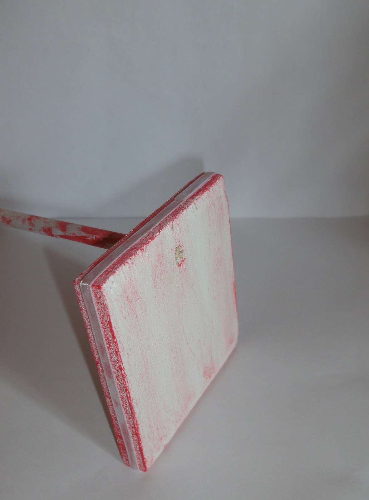 Эту скомканную бумажку обмакиваем в краску и наносим красную краску на подставку, прижимая бумажку к поверхности.