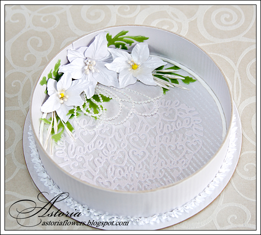 Дизайнерский картон, компостер ромашка 1 см., вырубка, фурнитура, цветы ручной работы. Мастер класс ТОРТ Размер нижнего яруса 12,5 см., верхнего 6,5 см.