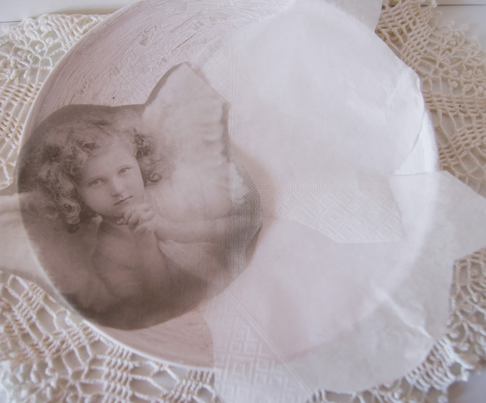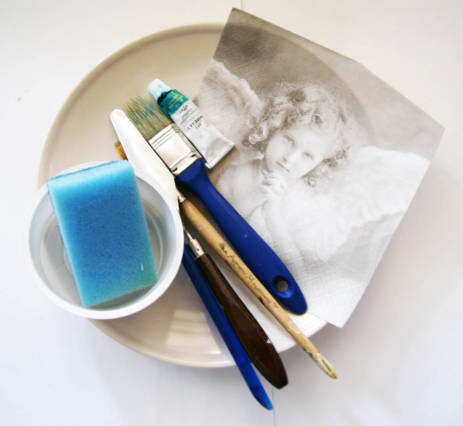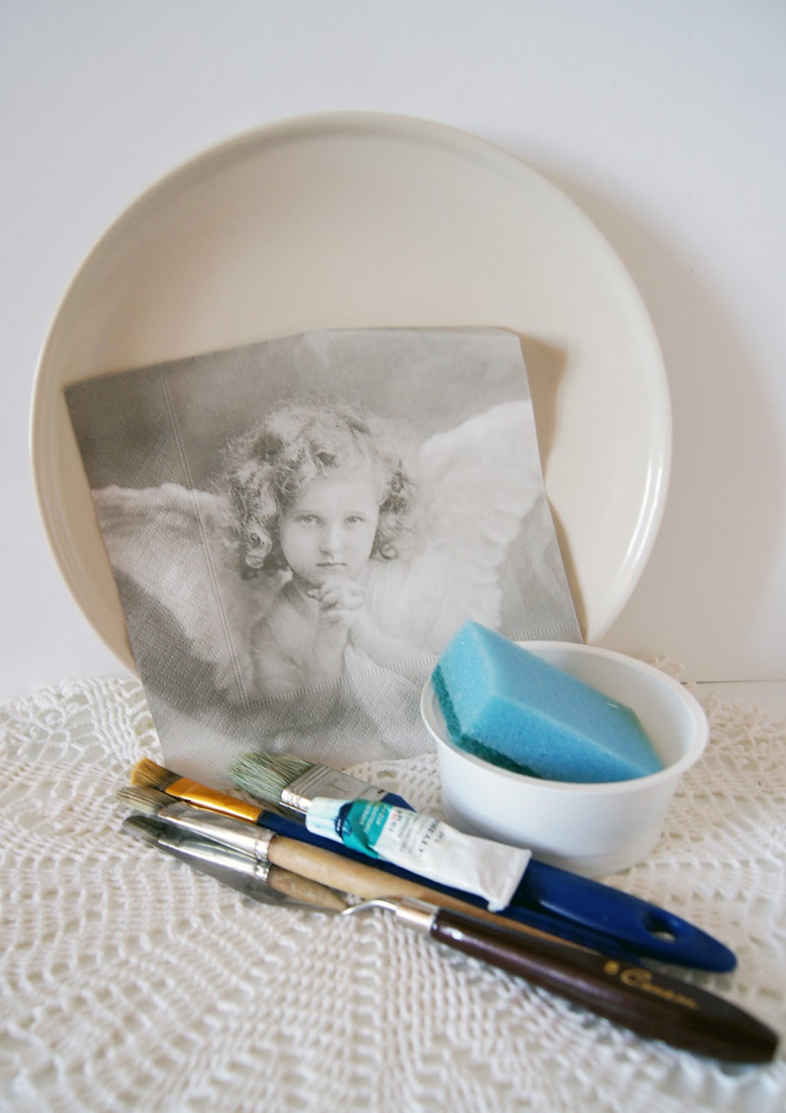 Выбираем картинку. У меня салфетка с ангелом. Лучше всего салфетка, т.к. она тонкая и будут хорошо видны трещины под ней. Не стоит выбирать слишком яркий рисунок, он должен гармонировать с вашими декором.