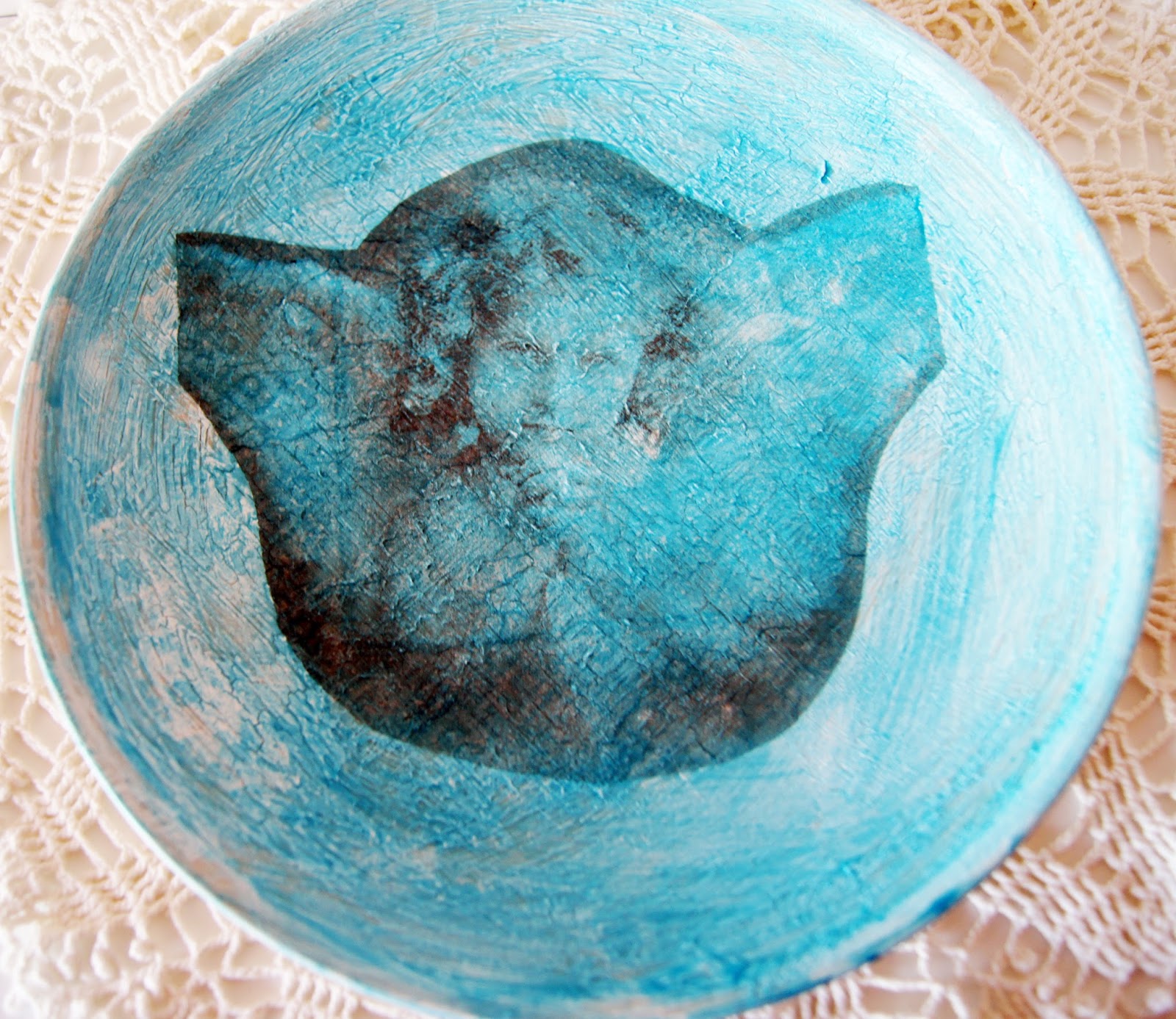 Размешали. Тонким слоем покрываем нашу тарелочку. Даём просохнуть. Рисунок прикладываем на выбранное место и покрываем лаком. Я покрывала "стеклом", т.к. делаю это не первый раз и хотела добиться эффекта глубокой прозрачности. Новичкам, желательно приклеивать рисунок на прозрачный лак!!!Бесцветный!!!А вообще,дело вкуса!!!