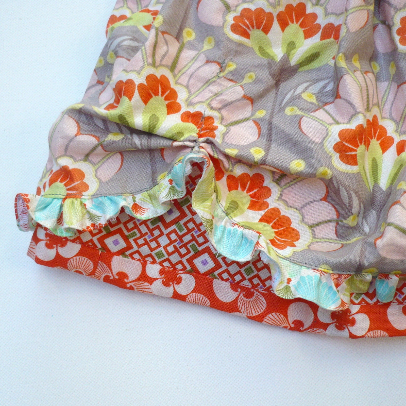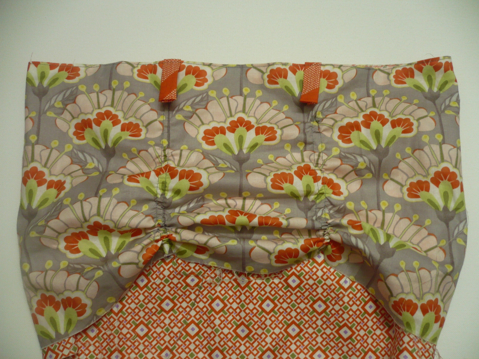 Теперь тянуть нить вертикальные шву осторожно, чтобы собрать юбку по вертикали.