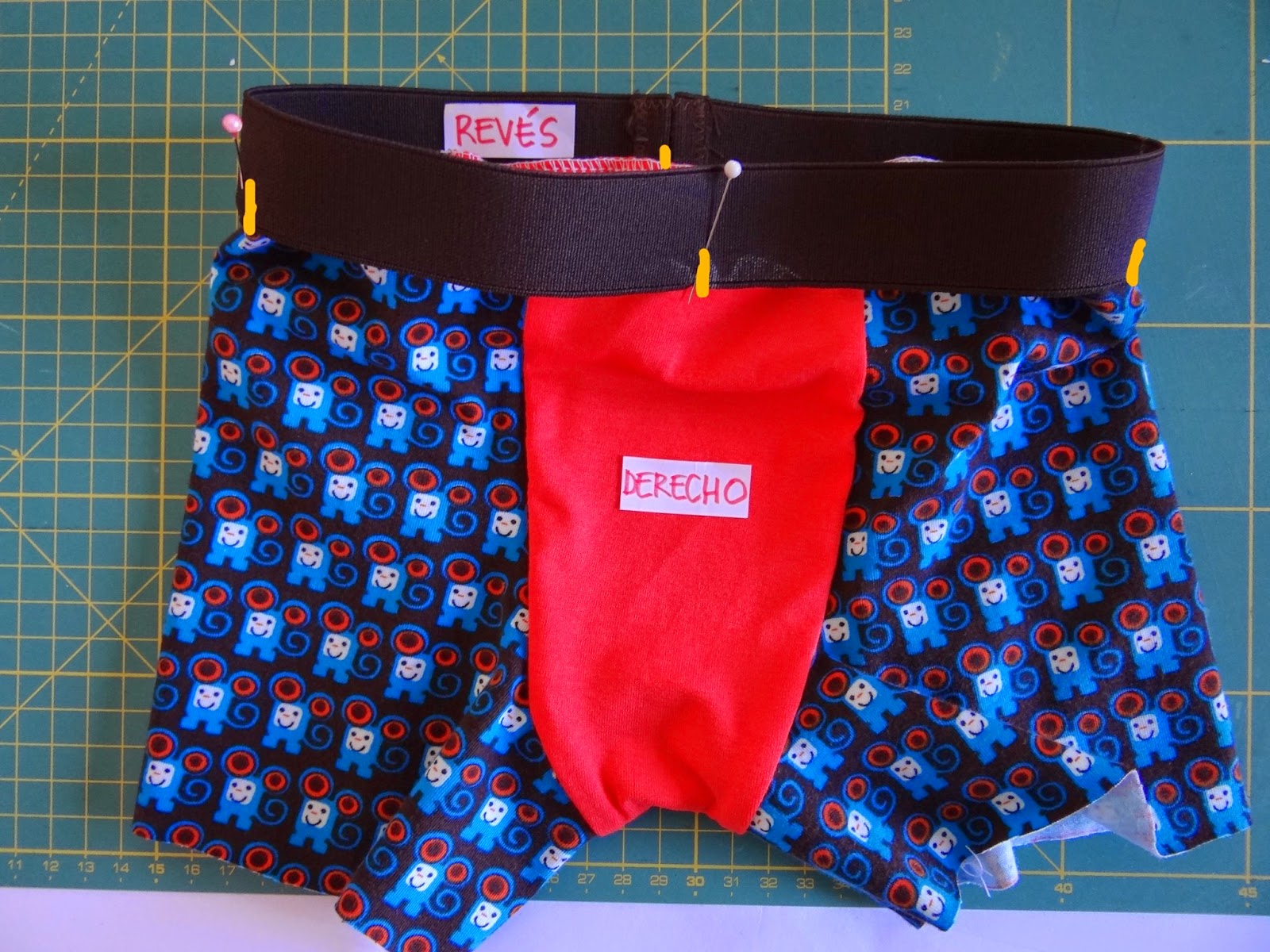 10 - Отметить квадранта боксер упругие и вместе с булавками. Совместите упругой линии шва талии. Fijaros оставить эластичный шов на спине и с эластичный шов видели на оборотной стороне. Проще контакты, если требуется.