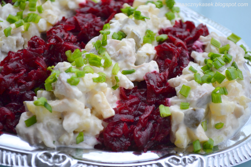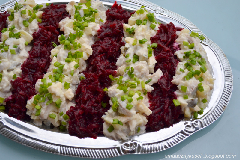 Dzisiejsza, sałatka śledziowa z buraczkami oczarowała mnie u Ewy, prezentowała się pięknie i okazale. Musiałam zrobić ją u siebie.