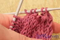 Снимаем три петли, являющимися одним переплетением, на рабочую спицу не провязывая их.