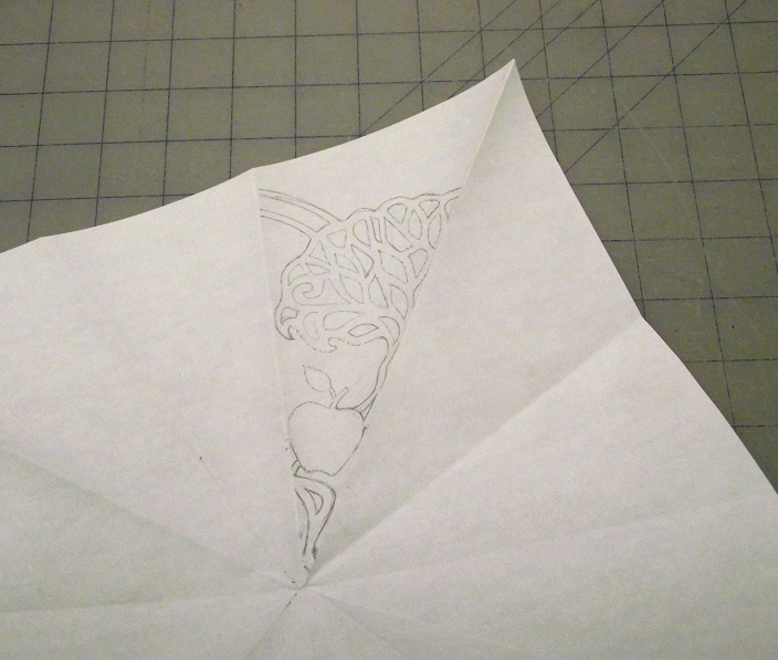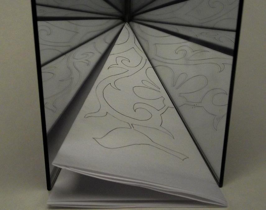 I unfold the paper and using a light box, transfer the image onto one section, then refold.