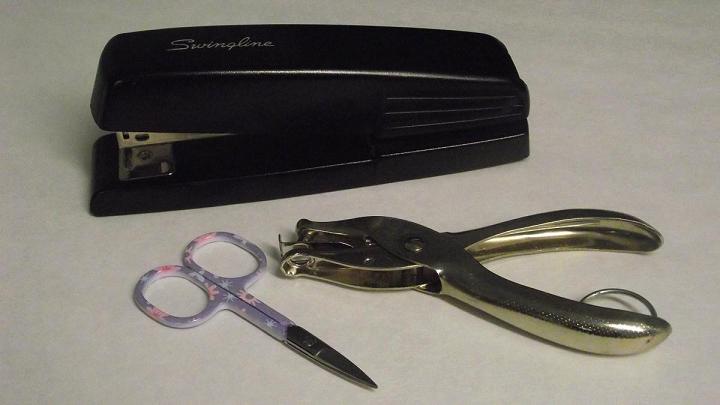 | Staples hold the layers tightly together, punched holes allow for easier maneuvering of the scissors. |