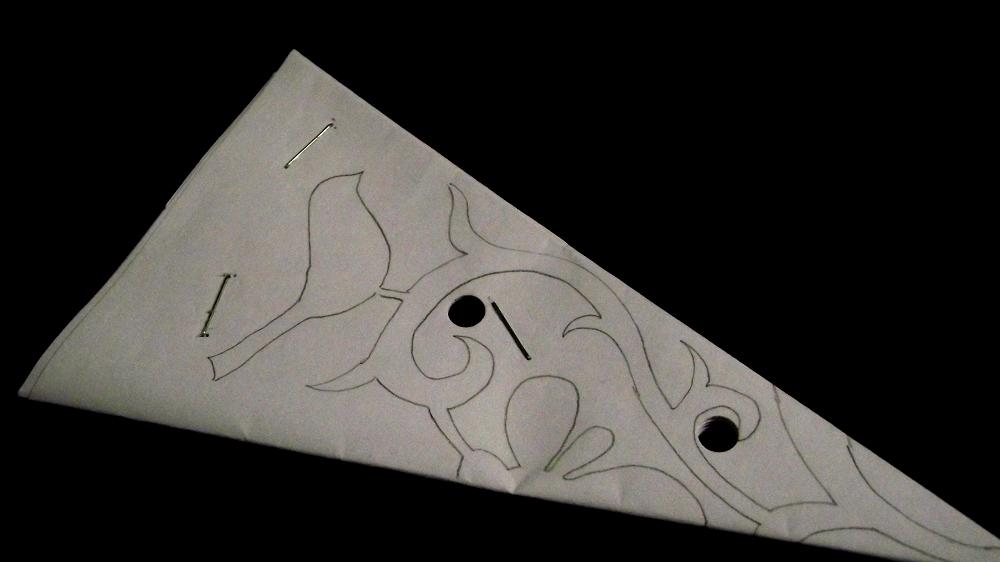 Once I have it unfolded, I use a dry iron to press it flat. This one has 12 sections and is made up of birds and bees. Whatever you choose to draw, you need to be sure that everything is "connected" otherwise it will all just fall apart.