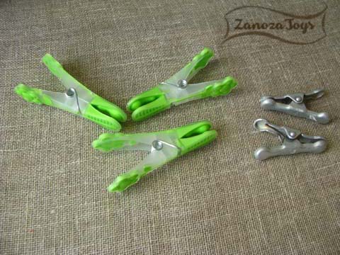 Третье, на что хочу обратить ваше внимание – прищепки. По собственному опыту могу сказать, что не перегибают лозу и не оставляют «зазубрин» советские алюминиевые прищепки. Из современных – пластиковые прищепки с силиконовыми наконечниками (см.фото). Для фиксации в труднодоступных местах хорошо подходят маленькие прищепки (у нас остались от старого карниза).