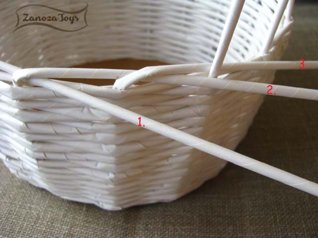 Далее делаем разметку для стоек, как на фото. У нас получается четное количество стоек. В случае плетения веревочкой (в 2 трубочки, как в мастер-классе по плетению пасхальной корзинки) можно использовать эту разметку.