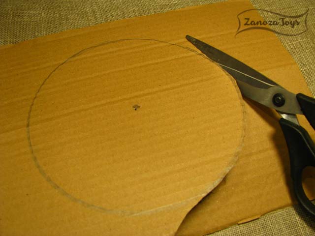 И последнее, что я советую сделать, если вы собираетесь плести корзинку с картонным дном – шаблон этого самого дна. Определяемся с диаметром, рисуем циркулем круг на картоне и вырезаем.