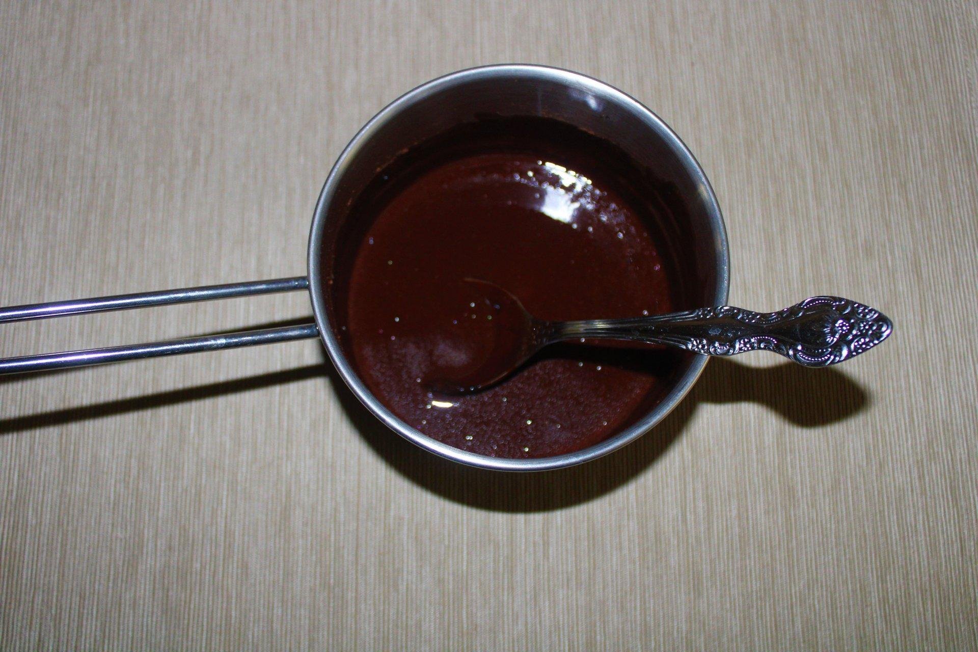 Остужаем шоколадную смесь и добавляем в нее 100 граммов размягченного сливочного масла.
