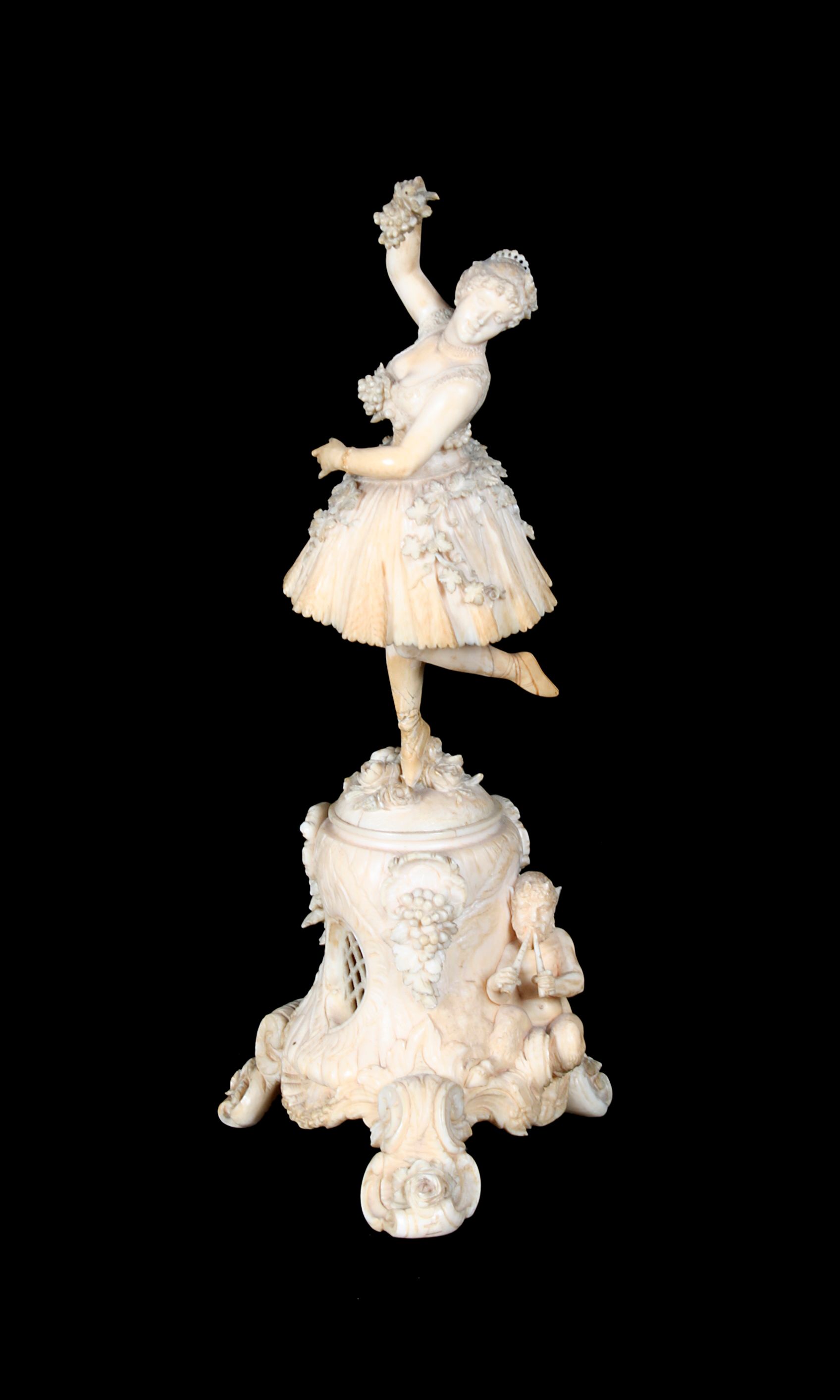 A late 19th / early 20th century carved ivory figure of a female dancer