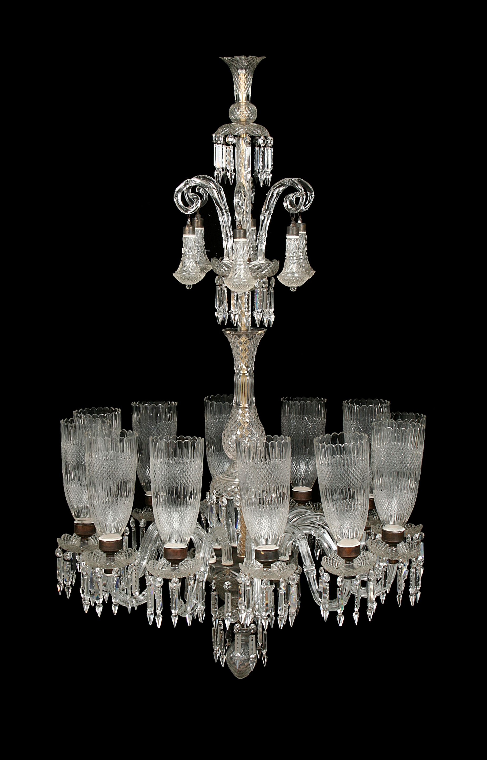 A large Osler style cut glass twelve light chandelier