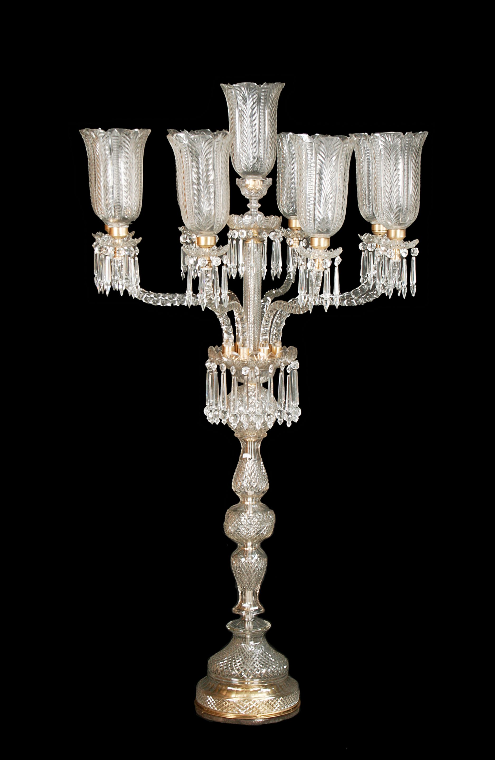 An Osler style cut glass nine light torchere